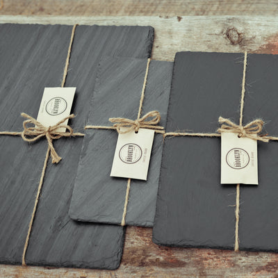 Brooklyn Slate Company was founded by Brooklyn graphic designer Sean Tice and Parsons graduate student Kristy Hadeka. After visiting Kristy’s family slate quarry in upstate New York in the spring of 2009, the two grabbed a few pieces for use as all purpose boards back home in Brooklyn. They found a number of purposes for the slate — as trivets for tea kettles and hot dishes to coasters for beers — and began gifting pieces to friends. The response was so overwhelmingly positive that the two struck out to produce a line of slate products.